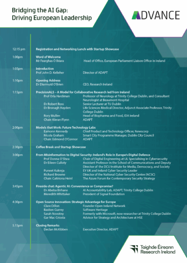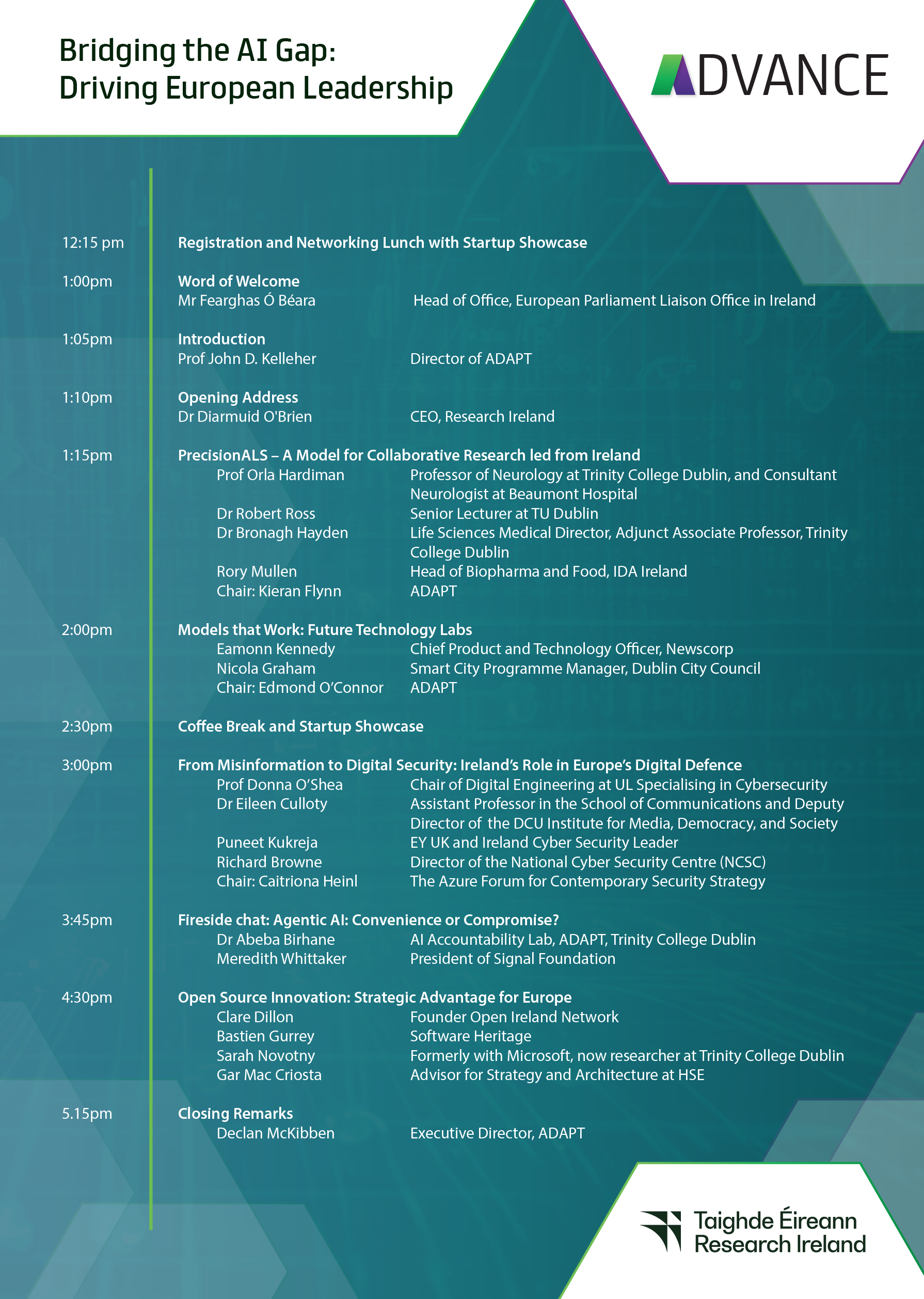 The ADAPT Centre will host its annual ADVANCE event on Thursday, 16th October. Now in its fifth year, this flagship forum unites leading academics, industry experts, entrepreneurs, and policy-makers in artificial intelligence (AI), offering a dynamic platform for sharing ideas, insights, cutting-edge research, and exploring the future of AI. This year the event will explore how trusted, collaborative innovation can help public and private organisations adopt and scale AI and emerging digital technologies.