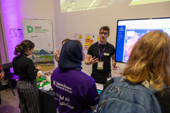 Highlights included Lost in Translation – Caillte san Aistriuchán, a game that challenged players to spot Irish proverbs (seanfhocail) passed through AI systems; AI’s Cultural Blind Spot, a quiz revealing how algorithms struggle with context; and Human or Machine? You Decide!, which let participants judge whether texts were written by people or generated by AI. Other attractions ranged from wearable devices generating AI “memories” of visits, to a 3D digital twin of Dublin Docklands with Smart Dublin, to Algowatch, which showed how algorithms spread disinformation.