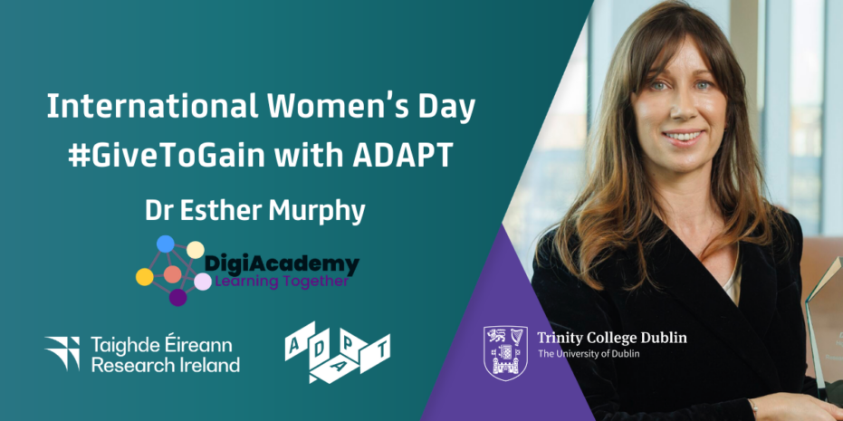 This International Women’s Day, ADAPT is spotlighting researchers whose work reflects the 2026 #GiveToGain theme in action. Among them is Dr Esther Murphy (School of Engineering, Trinity College Dublin), founder of DigiAcademy Technology, an award-winning initiative transforming digital inclusion for people with intellectual disabilities. DigiAcademy Technology is a Trinity College Dublin campus company, supported by Enterprise Ireland, delivering innovative, co-designed digital skills learning.