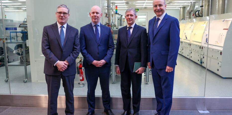 Photo caption: Pictured at Tyndall National Institute Cork today were (Left-right) UK Prime Minister, Sir Keir Starmer; CEO Research Ireland, Dr Diarmuid O’Brien; UKRI International Champion and Arts and Humanities Research Council Executive Chair, Prof. Christopher Smith; and Taoiseach Micheál Martin TD.